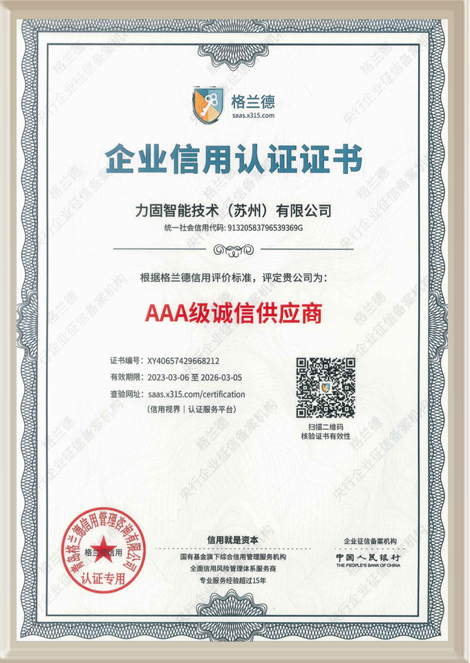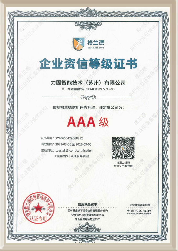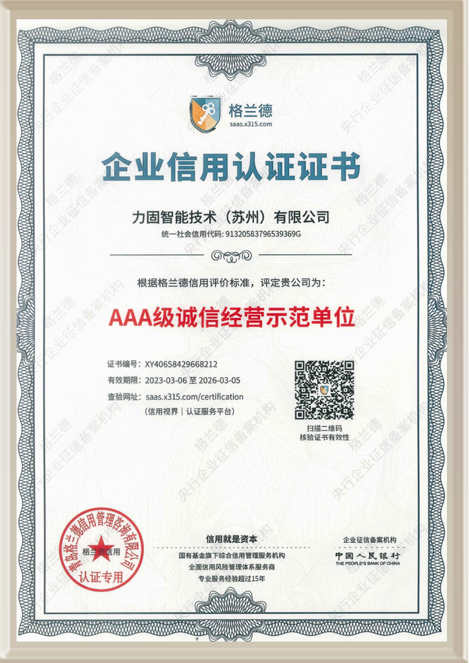 我司現已獲得GB/T19001-2016/ISO 9001:2015質量體系認證及江蘇省高新技術企業認證,“力固”品牌聲譽日隆,有口皆碑。